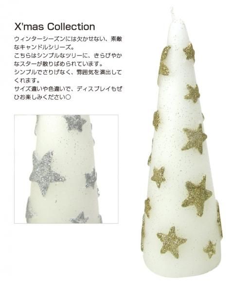 ウィンターシーズンには欠かせない、素敵なキャンドルシリーズ。こちらはシンプルなツリーに、 きらびやかなスターが散りばめられています。 シンプルでさりげなく、雰囲気を演出してくれます。 サイズ違いや色違いで、ディスプレイもぜひお楽しみください。