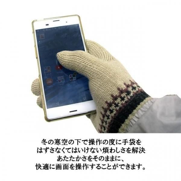 手袋をしたままタッチパネル(静電容量方式)が操作可能な手袋です。冬の寒空の下で操作の度に手袋をはずさなくてはいけない煩わしさを解決。