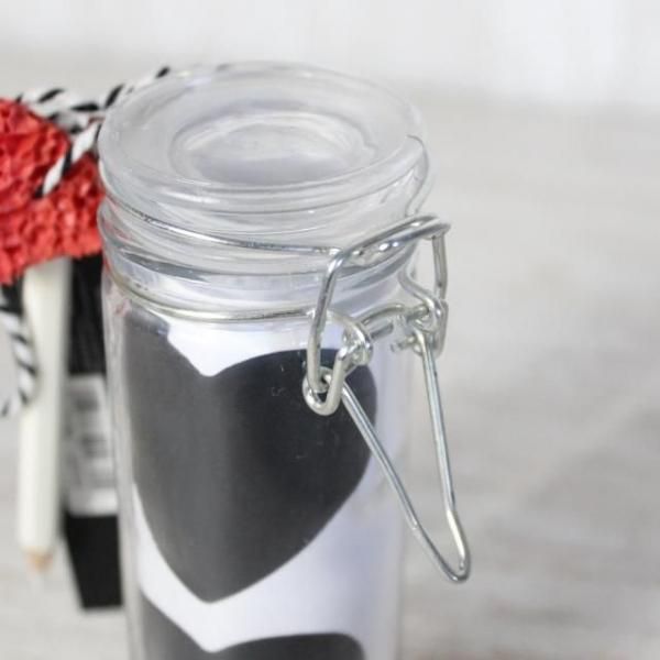 ガラスのキャニスターにロール状のラベルが入っています。
