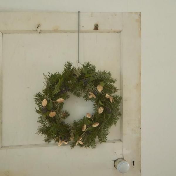 アイアンの質感はグリーンやナチュラルな素材とも相性がよく、リースやスワッグを引き立てます。