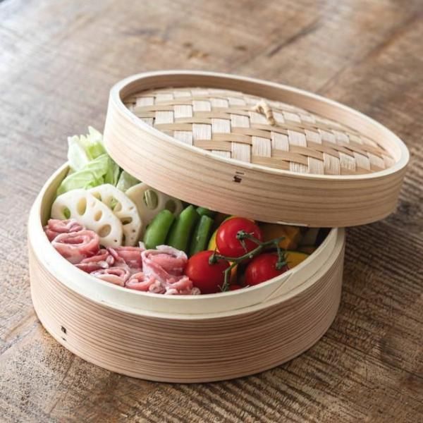 中華せいろは、蓋が編んであるので蒸気が逃げやすく、水滴が滴りにくいのがメリットです。