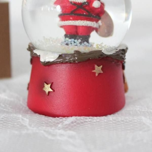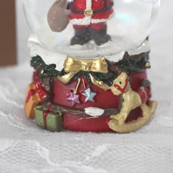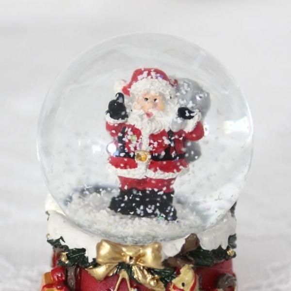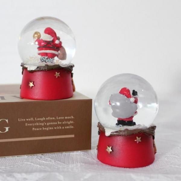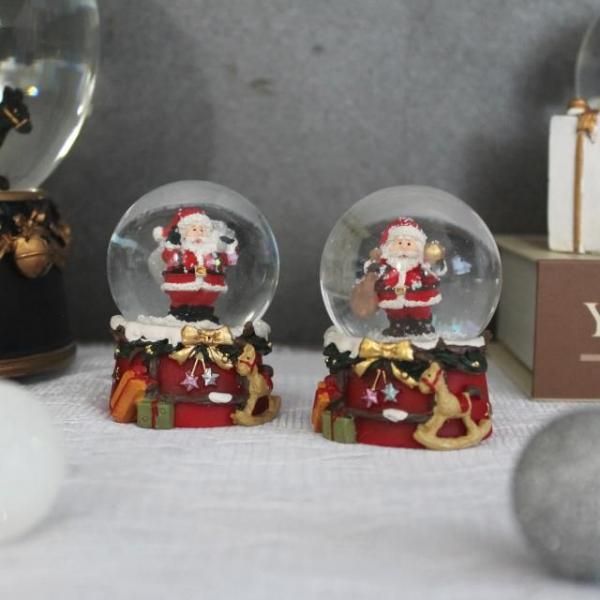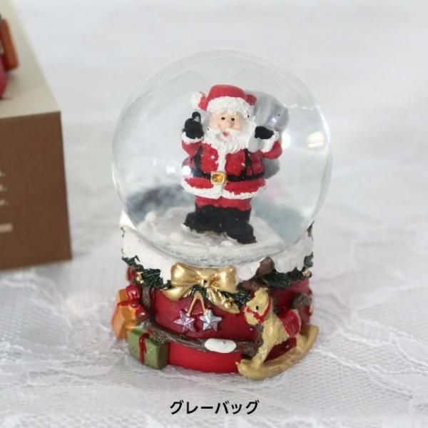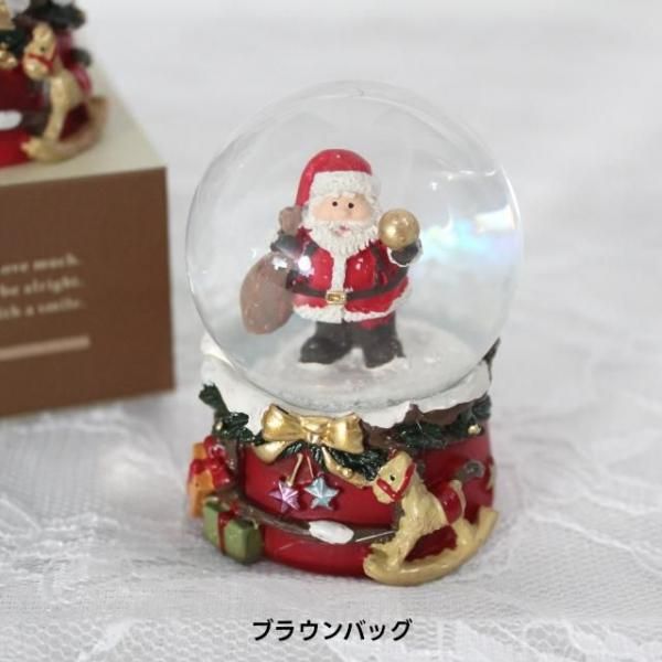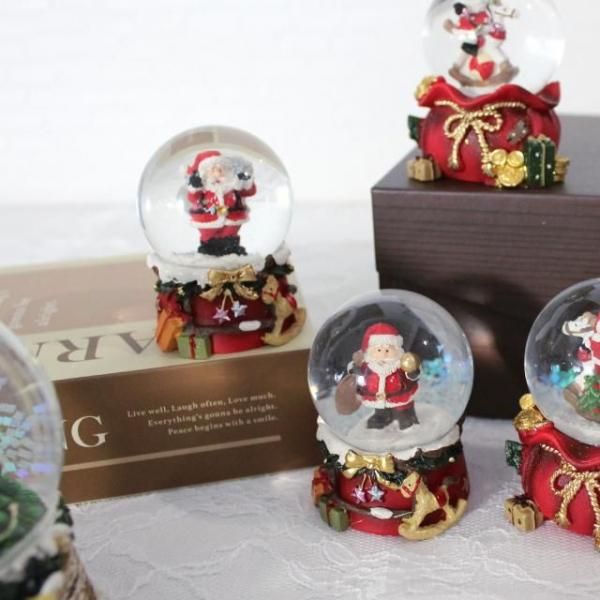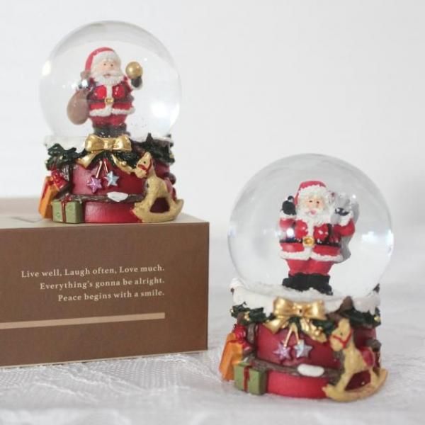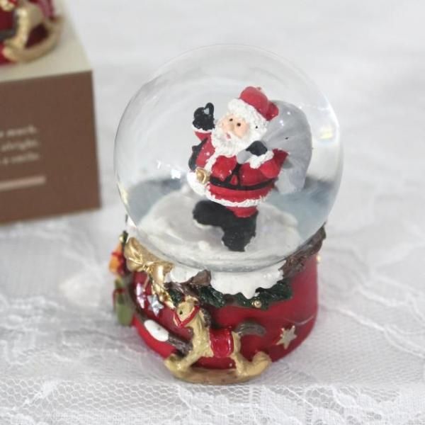 プレゼントバッグを持ったサンタクロースが入ったミニスノードームオブジェ。 ゴールドのリボンを付けた赤いベースには、ロッキングホースやギフトボックスがデコレーションされ、賑やかな雰囲気です。 デスクや書棚に飾れるミニサイズのスノードームは、クリスマスプレゼントに人気です。
