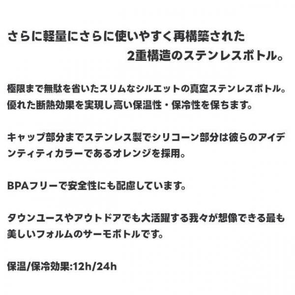 キャップ部分までステンレス製でシリコーン部分は彼らのアイデンティティカラーであるオレンジを採用。