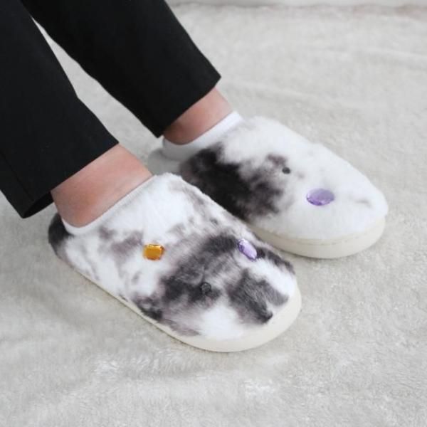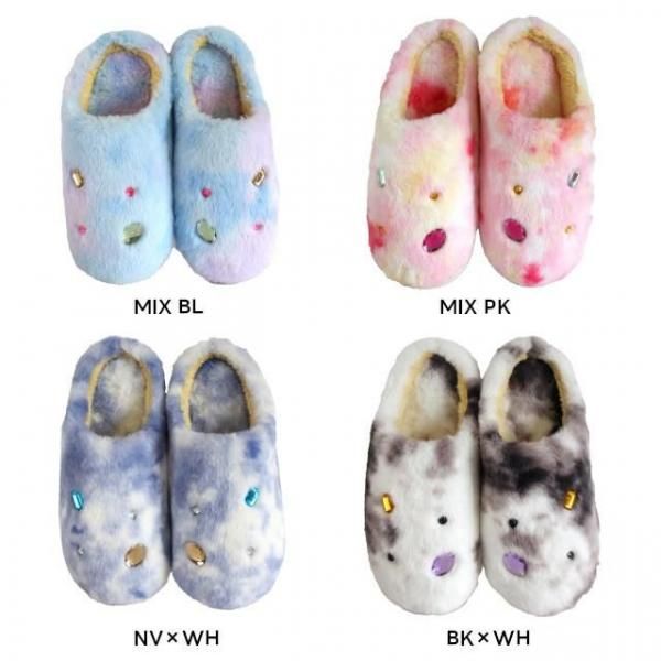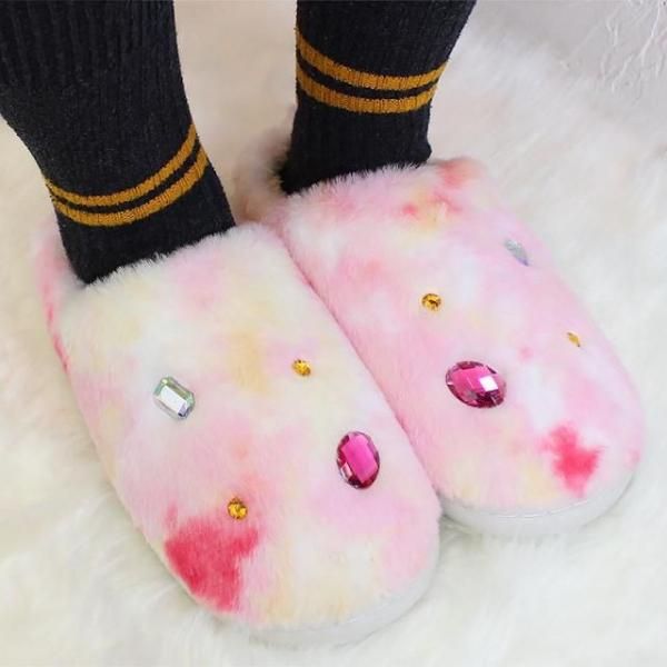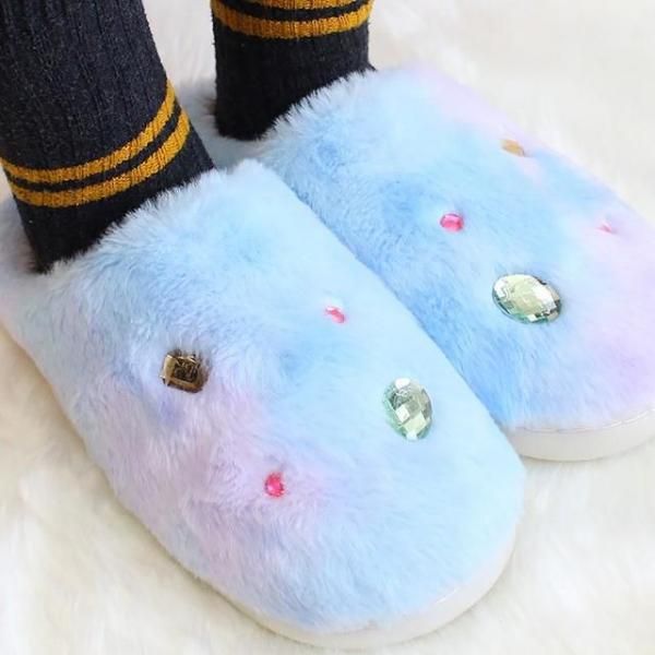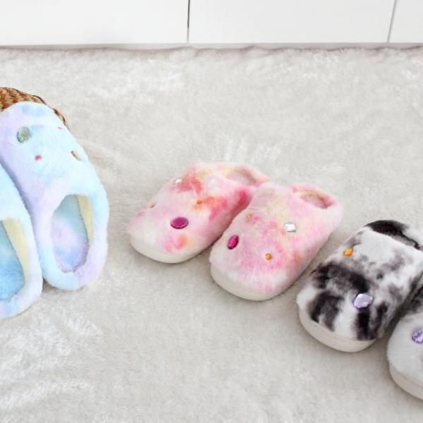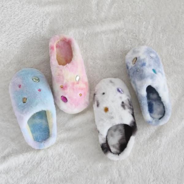 RelaxLuxury -リラクジュアリー- グラデーションファーとビジューDECOが今っぽい 厚みのある底と内側ボアで、ふわふわの履き心地。 お部屋の中でもかわいく、ぬくぬく過ごせます。 デザイン性と快適さを兼ね備えたこのルームシューズで毎日のおうち時間をもっと特別にしてみませんか? ギフトにもオススメです。